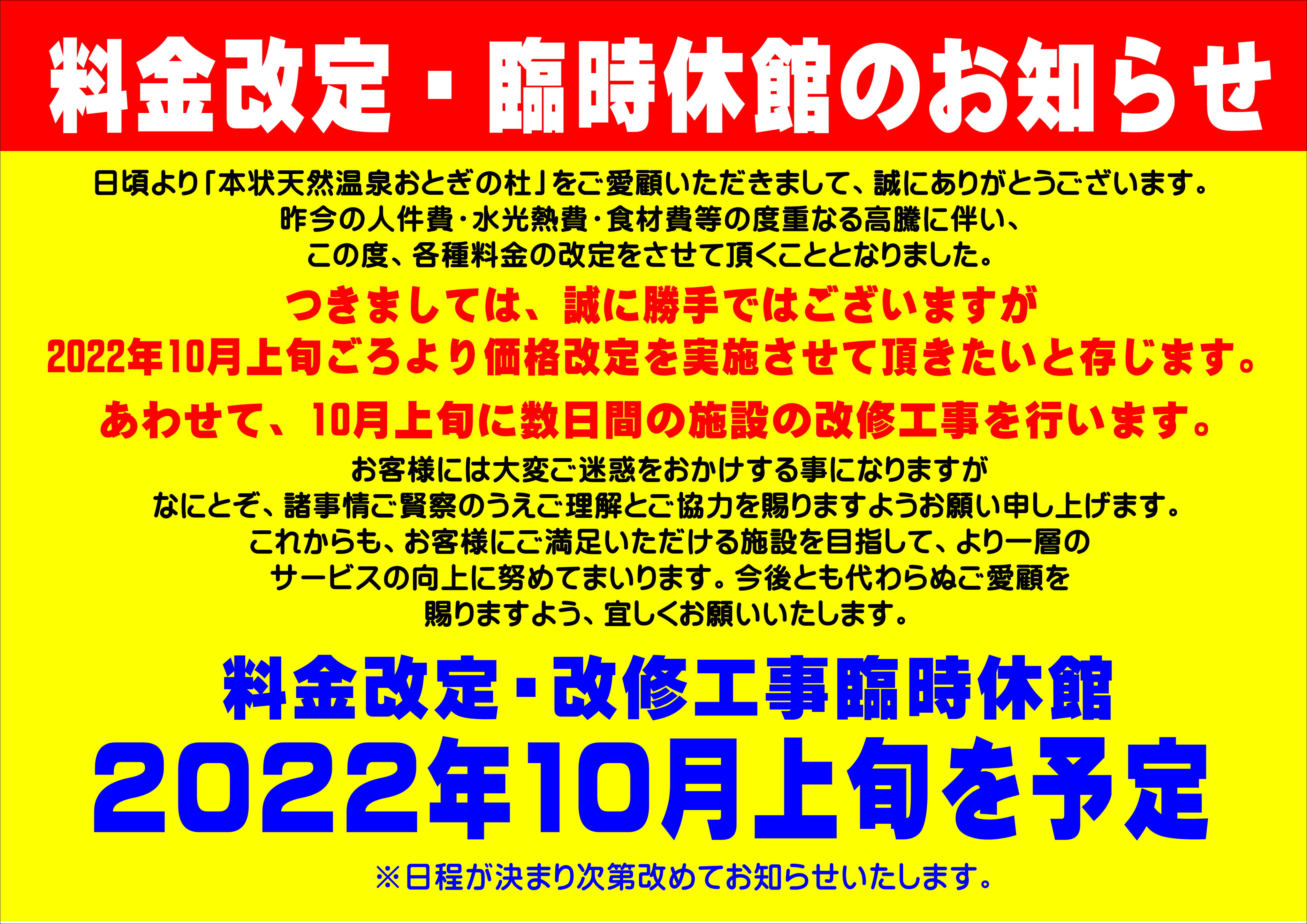 料金改定・改修工事告知