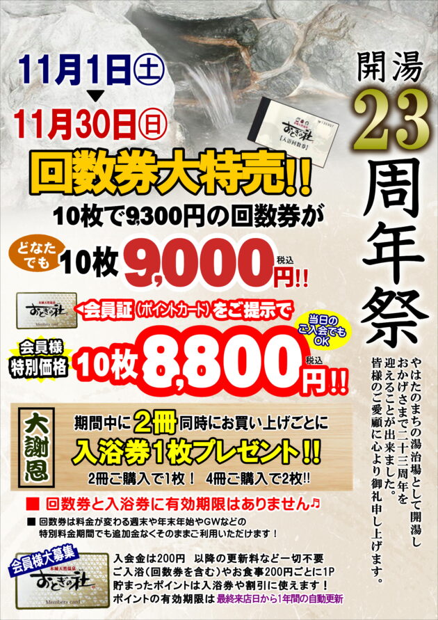 皆様の日頃のご愛顧に感謝を込めて回数券の大特売‼