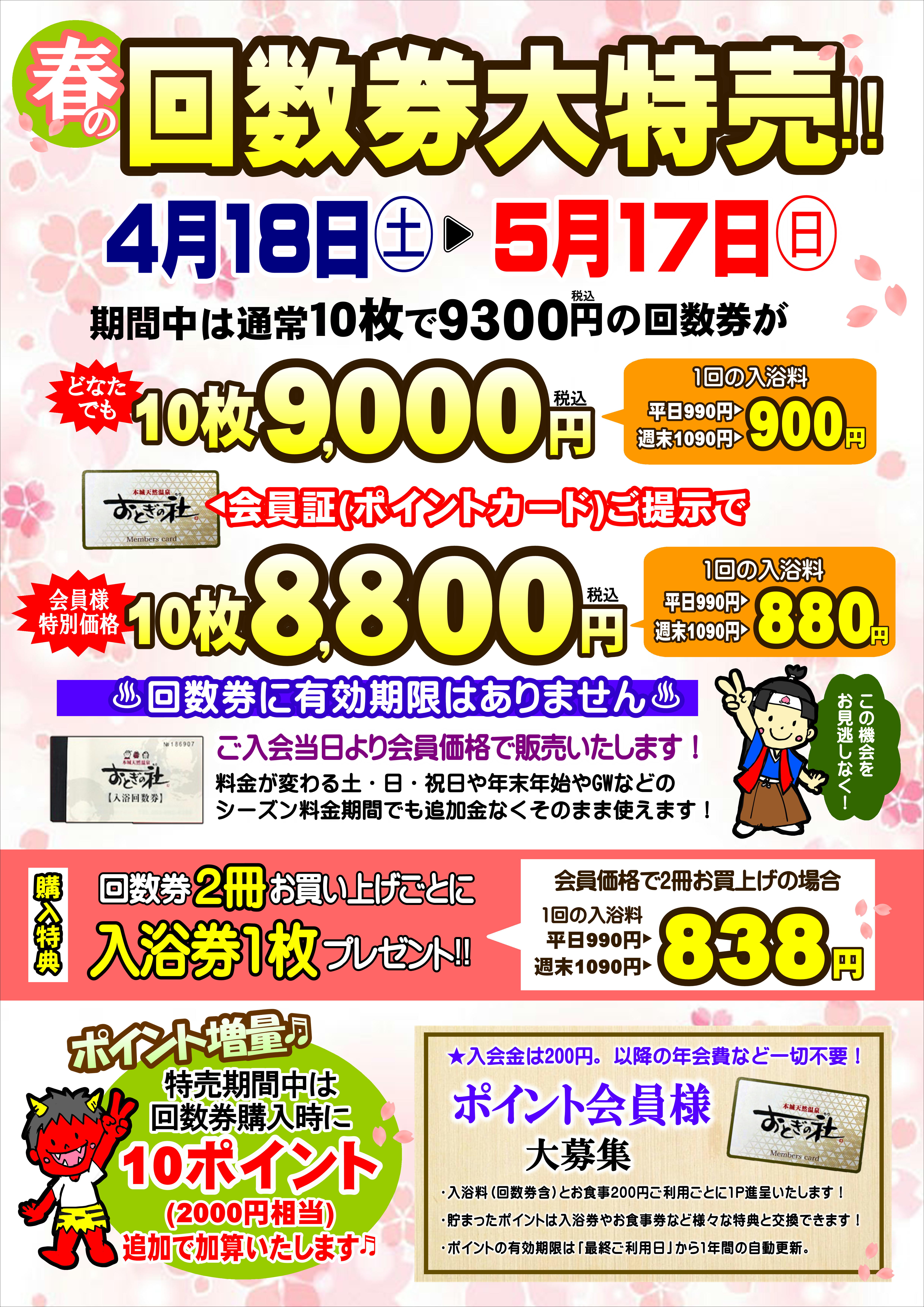 回数券1冊お買上げにつき10ポイント(2000円相当)プレゼント♪